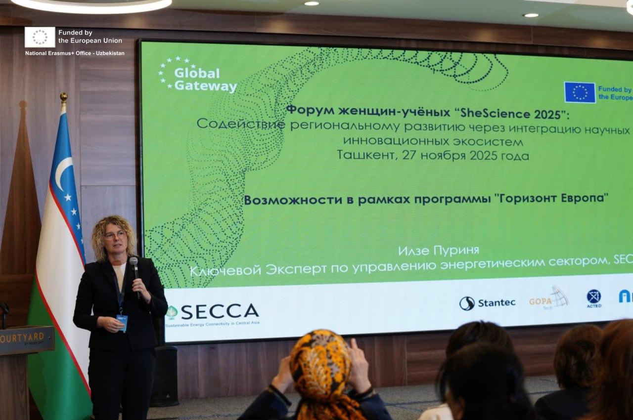 The National Erasmus+ Office in Uzbekistan participated in the SheSCIENCE 2025 Forum: “Promoting Regional Development Through the Integration of Scientific and Innovation Ecosystems”, held on 27 November in Tashkent and organised by the Academy of Sciences of the Republic of Uzbekistan, the World Bank, and the Asian Development Bank.