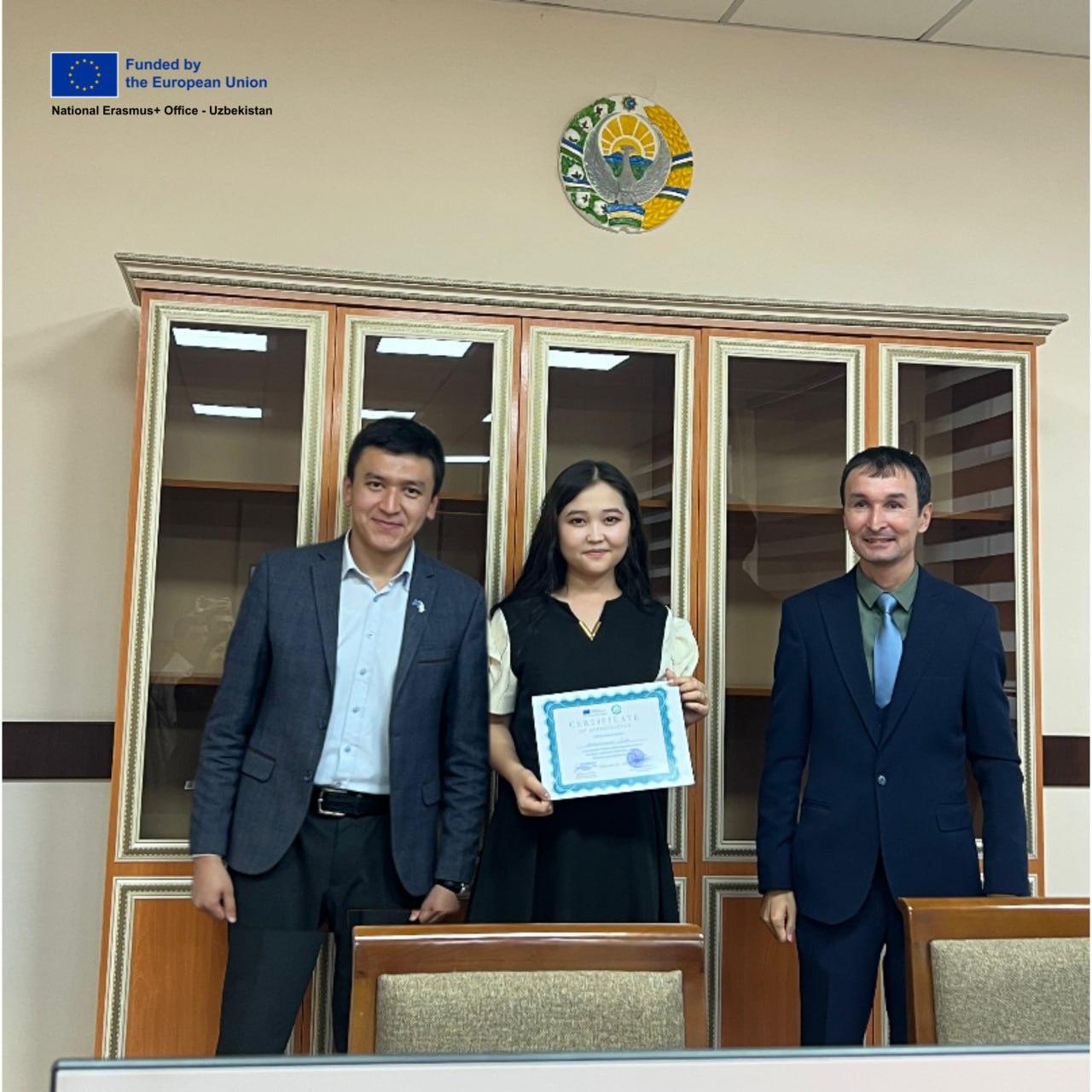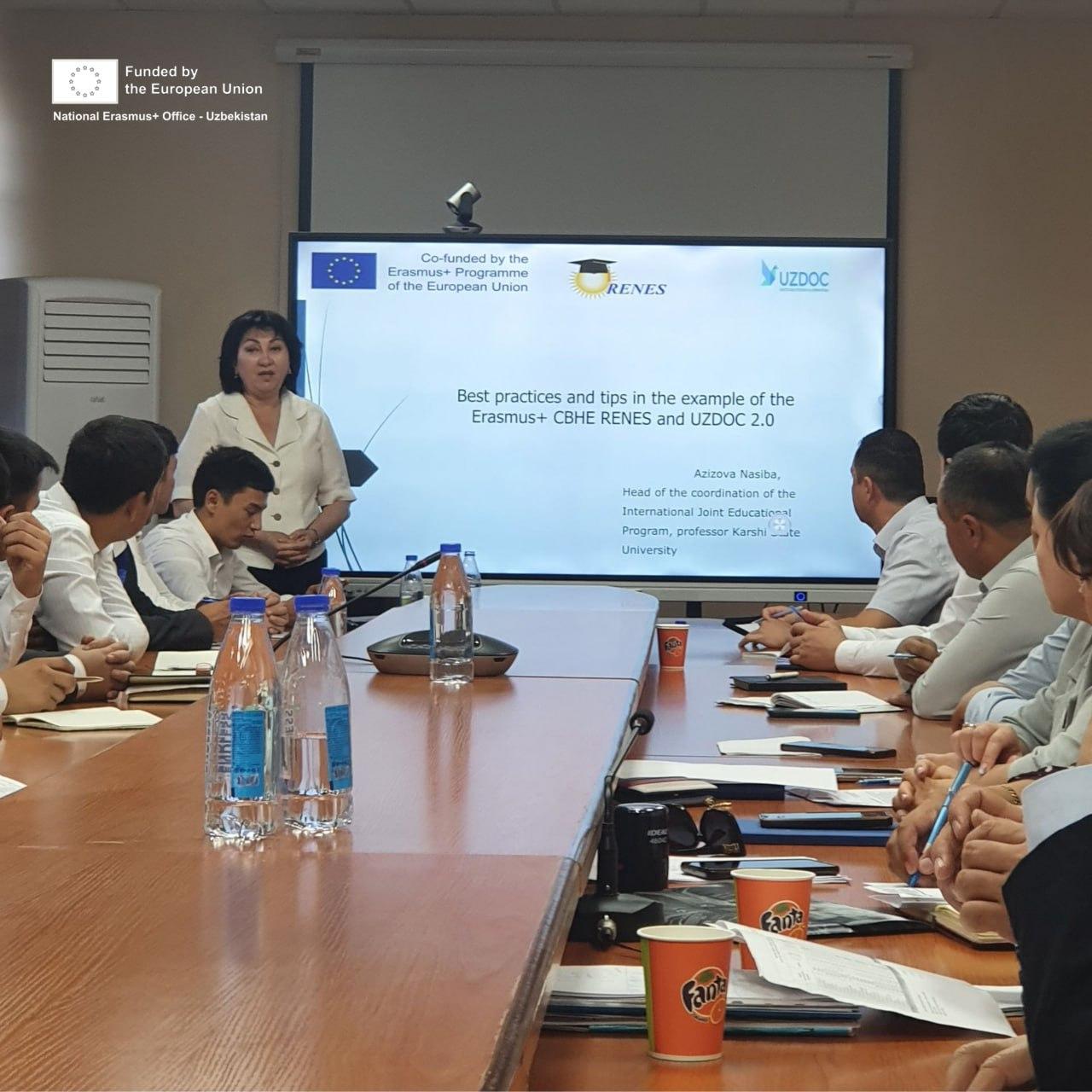 Ma’ruzachilar qatorida Mahmudjon Utkurov (Milliy Erasmus+ Ofisi loyihalar menejeri), Alibek Eshev (Qarshi davlat texnika universiteti) va Nasiba Azizova (Qarshi davlat universiteti) o‘z tajribalari hamda amaliy tavsiyalari bilan o‘rtoqlashdilar.